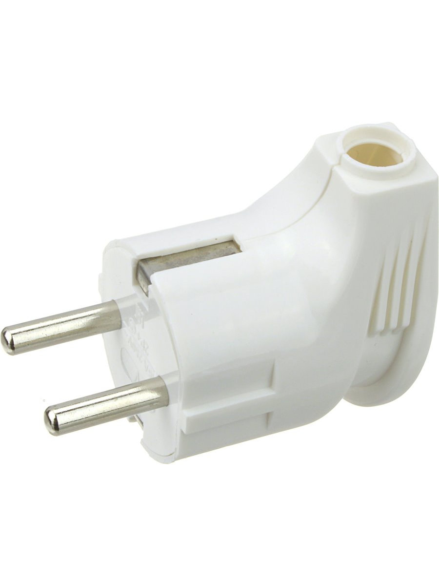 Вилка угловая евр. Ткань корпуса - самозатухающий АБС-пластик. Модель не подвержена влиянию ультрафиолета и нормально работает в спектре температур от 0 до +35 градусов.С заземлением. 16 А, 220 В.С заземлением. Цвет белый.