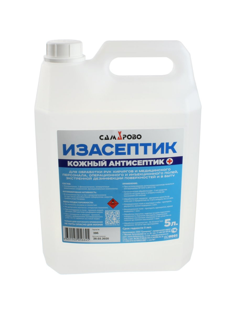 Кожный антисептик для обработки рук хирургов и медицинского персонала, операционного и инъекционного полей, экстренной дезинфекции поверхностей и в быту.