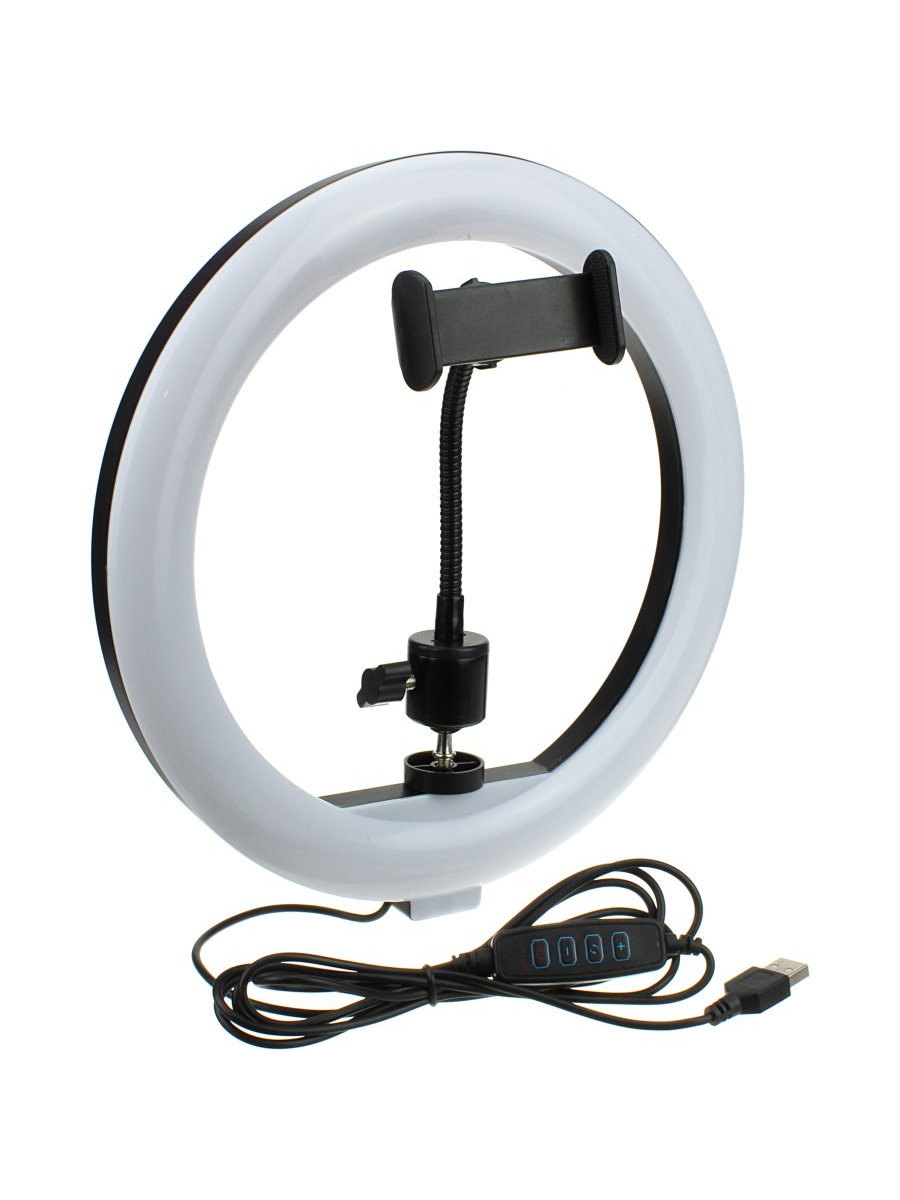 Осветитель кольцевой - LED селфи кольцо Selfie Ring Light — лампа вспышка станет незаменимым помощником в отсутствии дневного света, поможет Вам избавиться от лишних пятен на снимках, сделает взгляд на селфи более выразительным, создаст эффект "ангельских глазок". Диаметр кольца 26см.