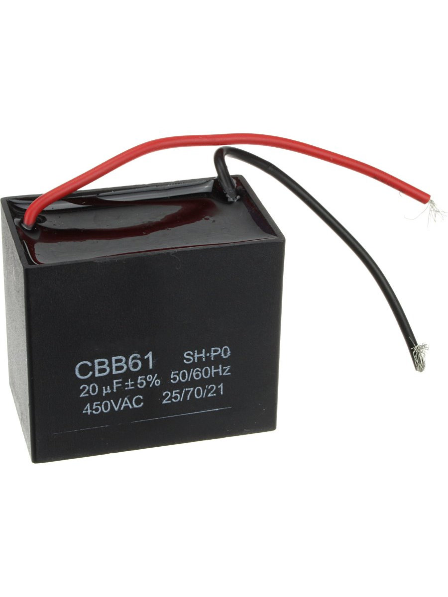 Конденсатор пусковой 20мкФ 450В 5% CBB-61 выводы провод