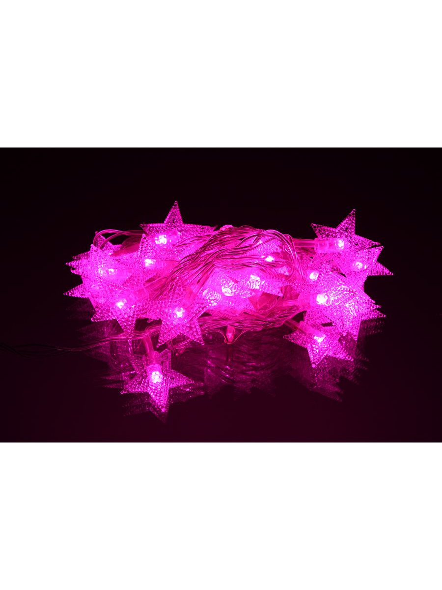 Гирлянда 30 свд, 3 метра, звезды, розовая