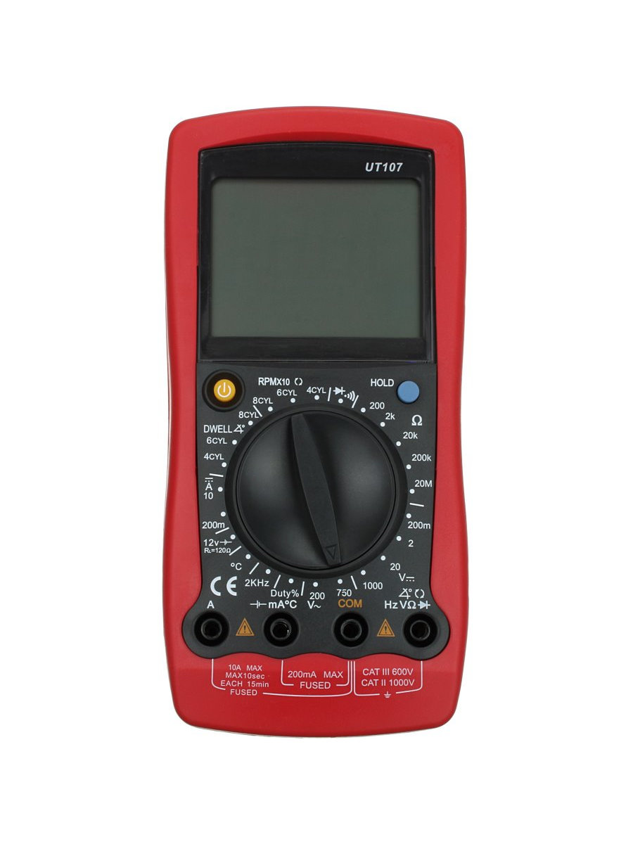Профессиональный автомобильный мультиметр UNI-T UT107 тест аккумуляторов, угол зажигания, скорость вращения двигателыбор пределов измерений ручной
