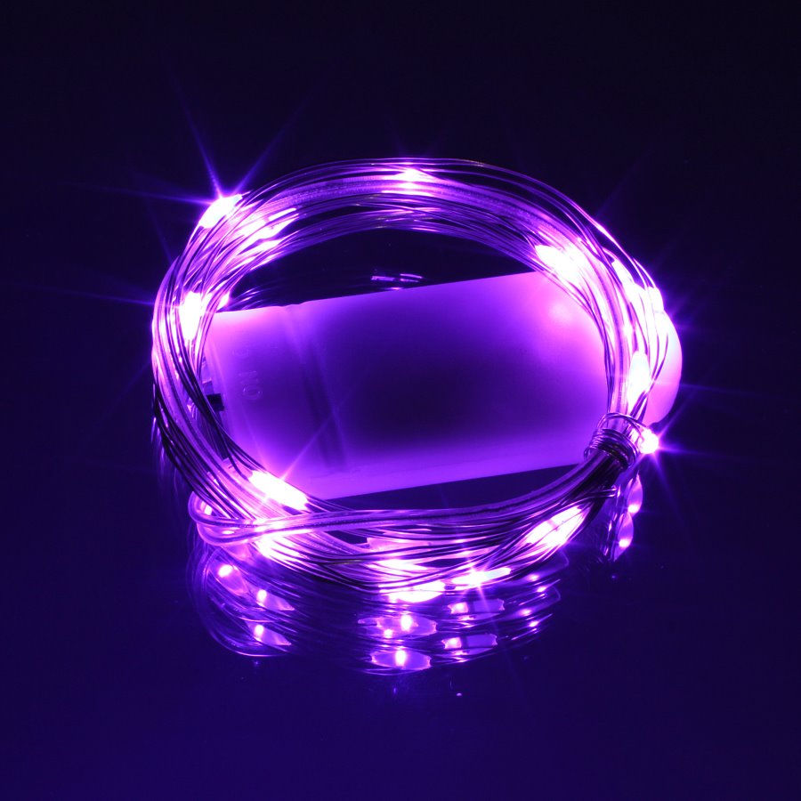Гирлянда "Роса" 20 СВД 2 метра, фиолетовый цвет (батарейки 2032*2 в комплект не входят)