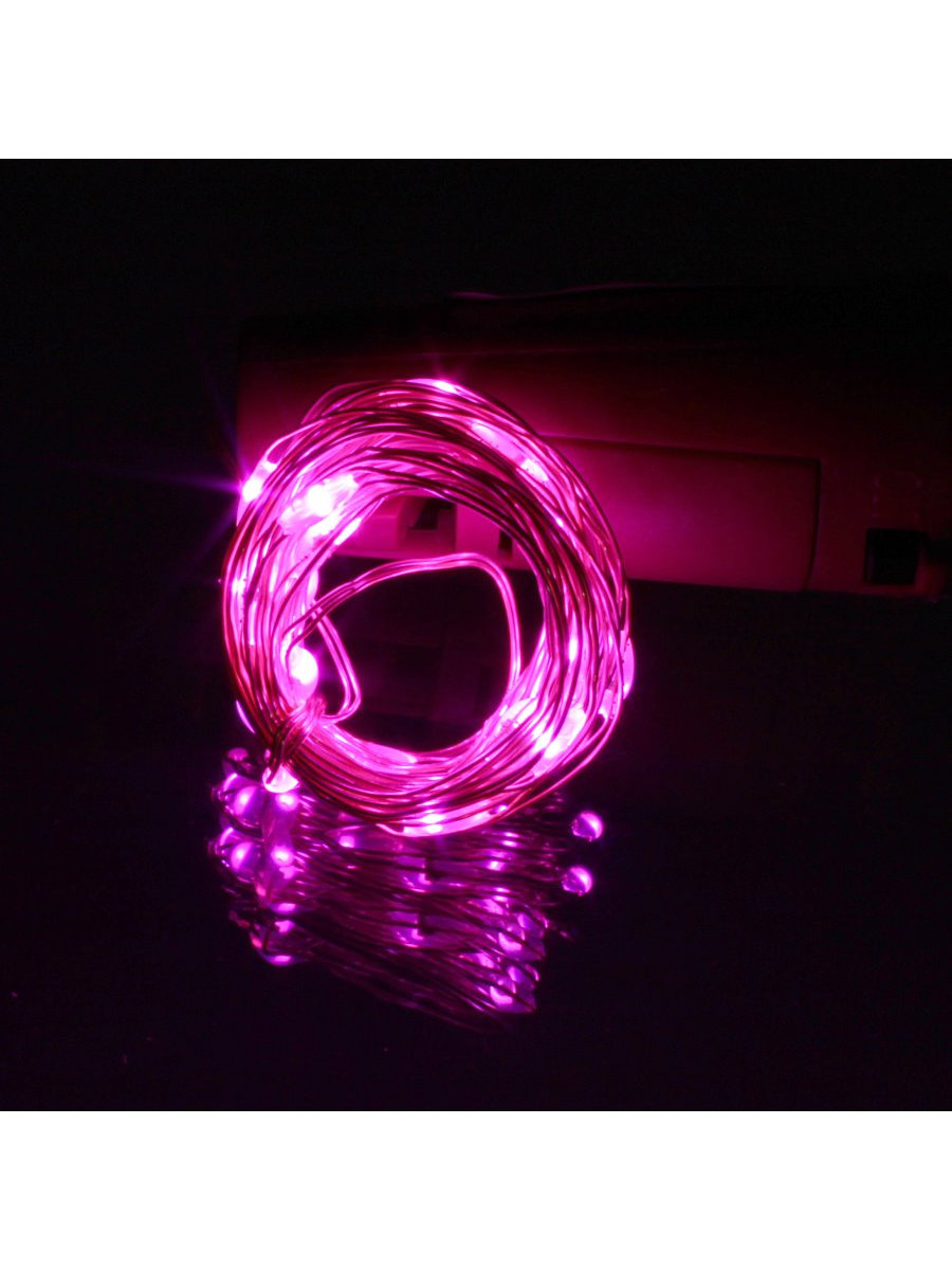 Гирлянда "Роса" 20 СВД 2 метра, цвет розовый батарейки в пробке 3AG13