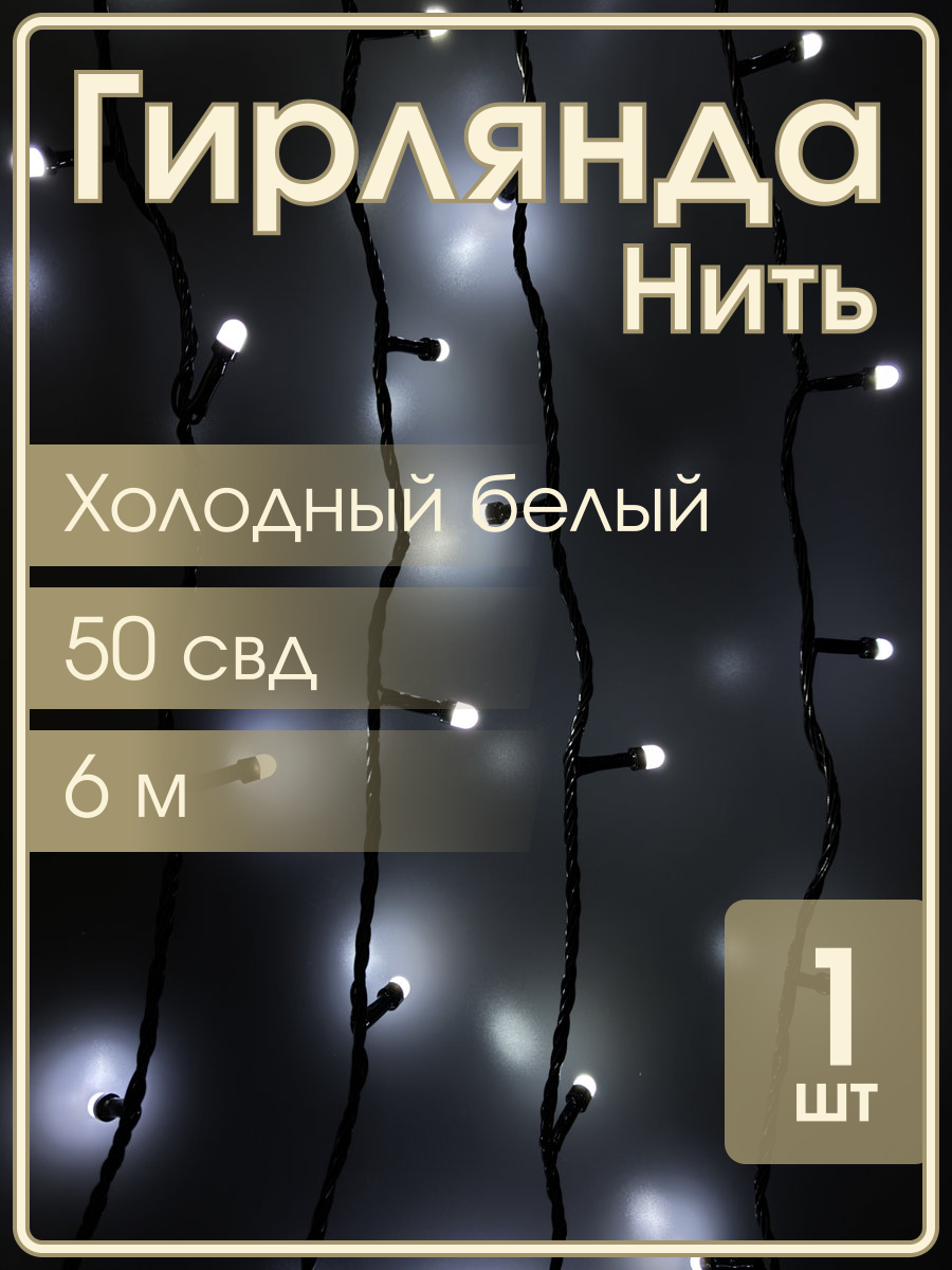 Гирлянда 50 СВД 7мм, белый холодный, матовые светодиоды, 6 метров