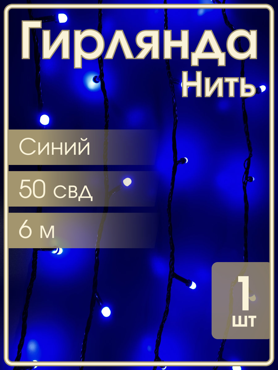 Гирлянда 50 СВД 7мм, синяя, матовые светодиоды, 6 метров