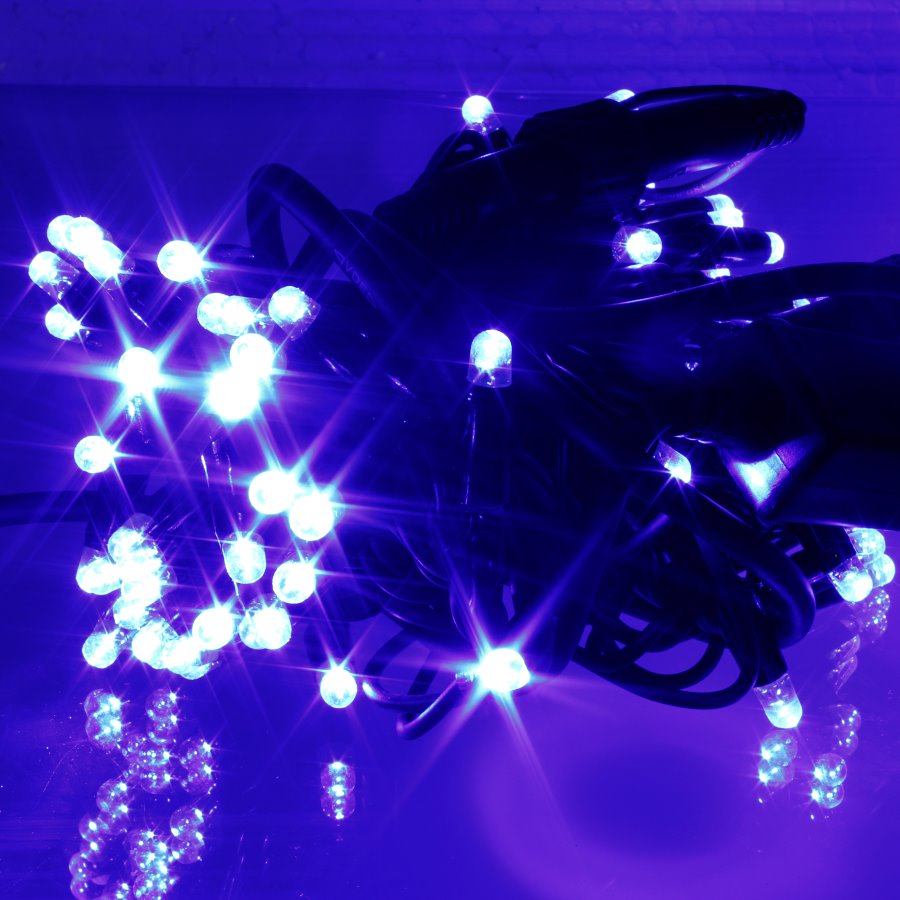 свечение - синий свет, через каждый 10 светодиодов 1 светодиод - мигающий белый.
