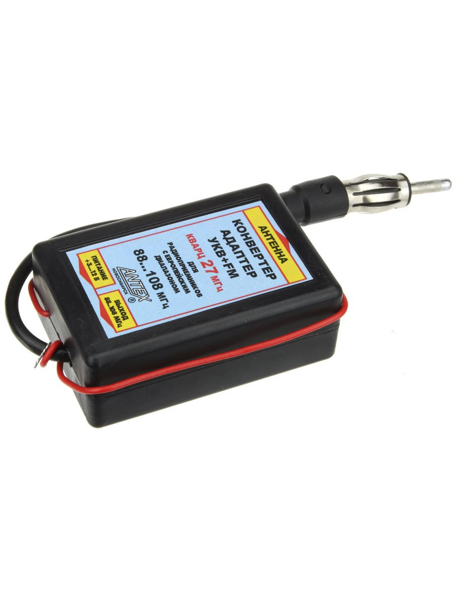 штекер антенны вставьте в гнездо антенны конвертера, а штекер конвертера в гнездо антенны автомагнитолы, затем присоедините провод питания конвертера к цепи питания магнитолы +12 В. Включите магнитолу и настройте на радиостанции УКВ ЧМ и FM диапозонов.