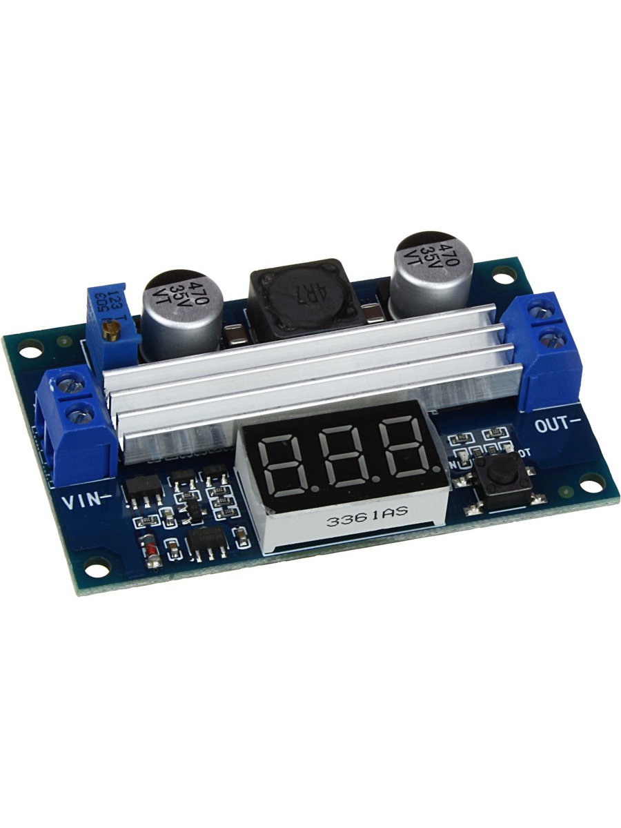 При настройке синего потенциометра используйте мультиметр для контроля напряжения.