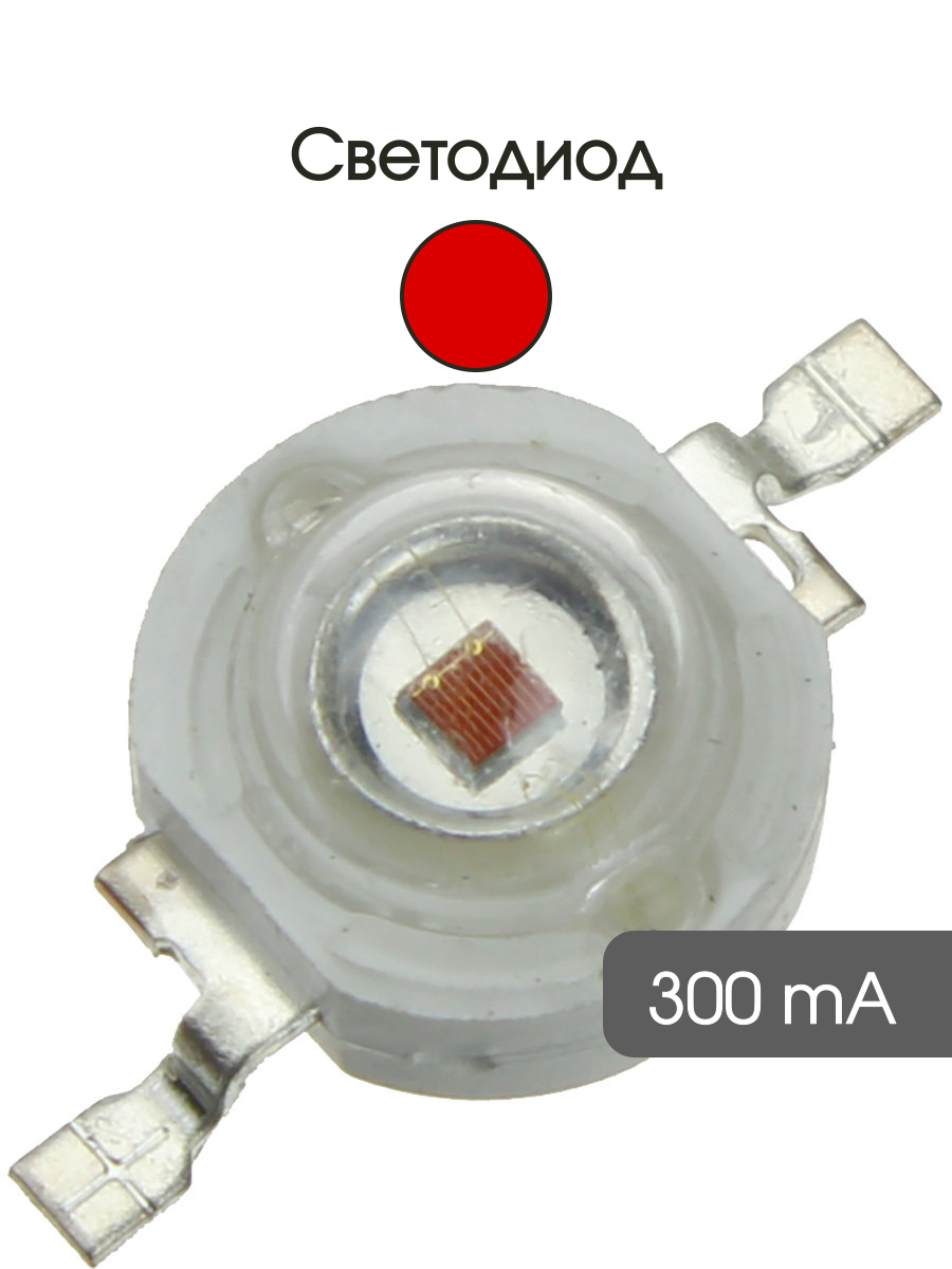Светодиод 1W 100Lm, красный, 3,4V, 610-620К