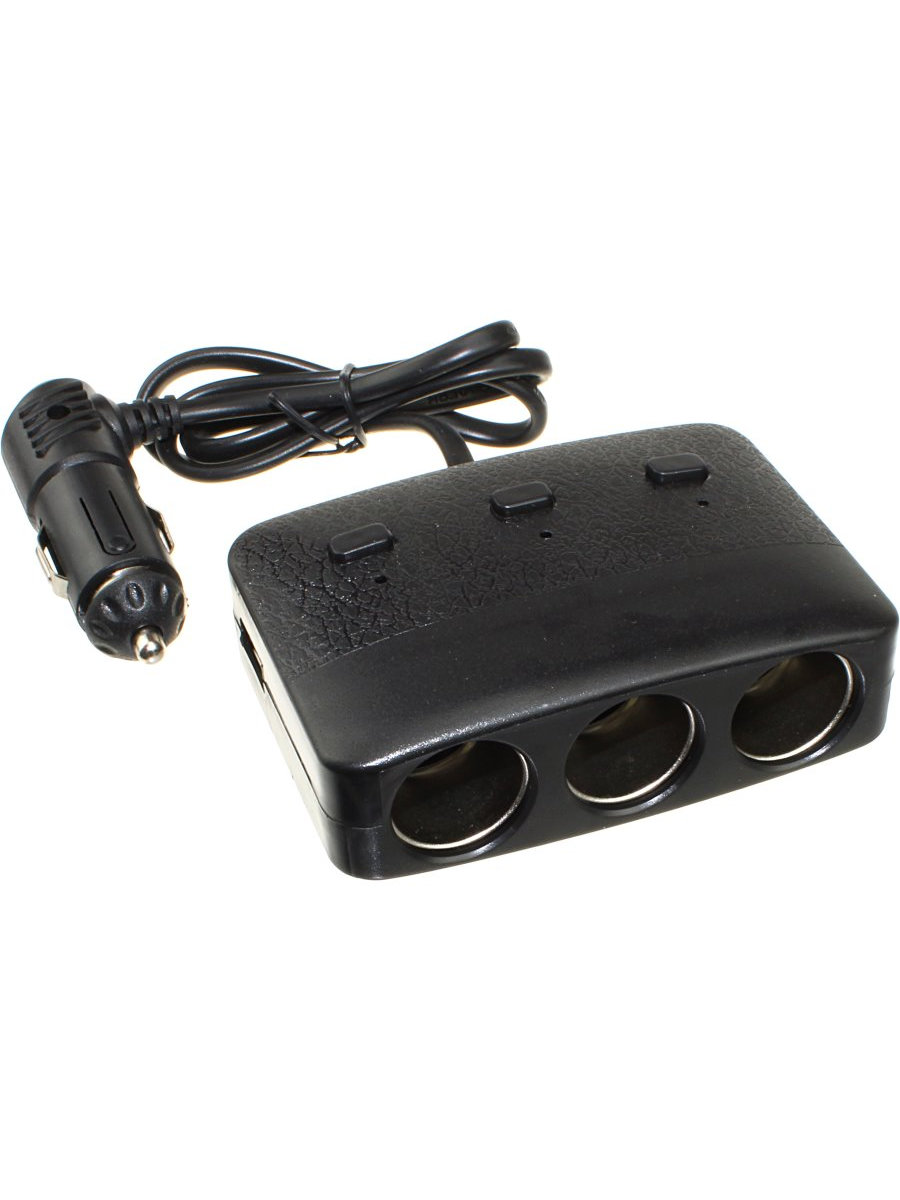 Разветвитель автоприкуривателя 3в1 2USB(G) 12/24V 100Wt кнопка включения Olesson 1636