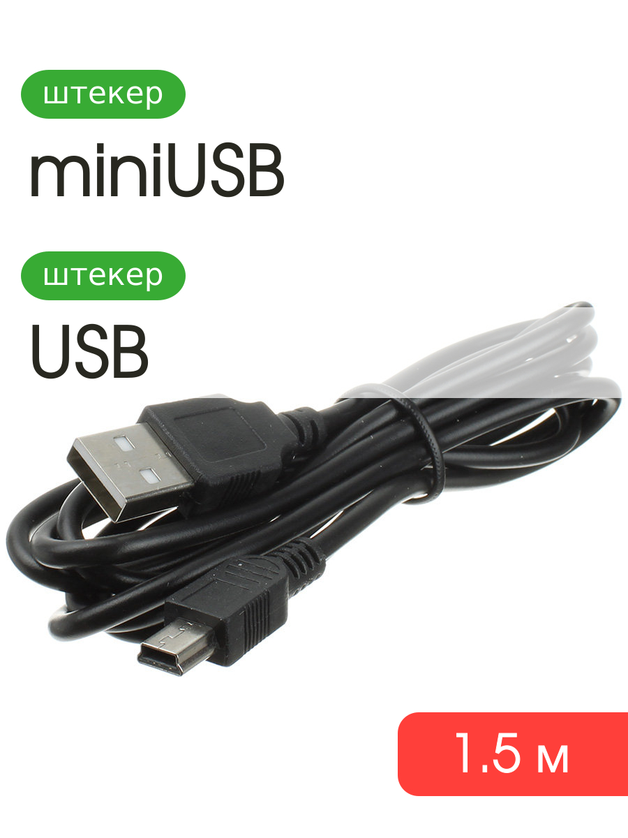 Шнур USB A-miniUSB 5PIN 1.5м черный