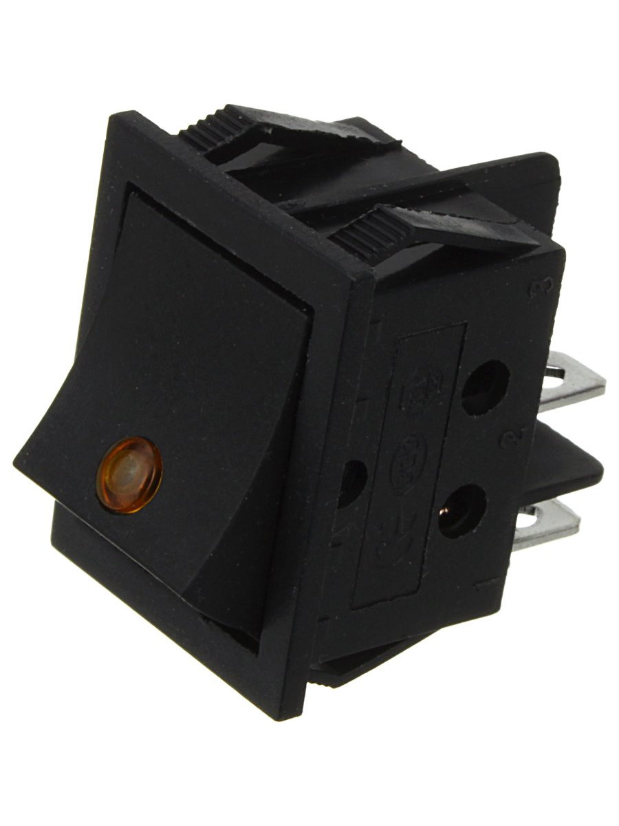Выключатель 25*30 черный 4 контакта, с желтым глазком