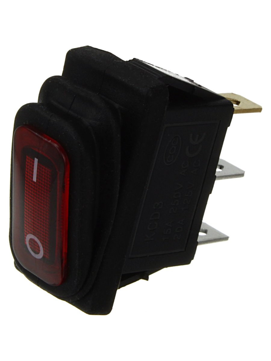 Выключатель 16Х34 3 контакта, 2 положения красный подсветка 15А, влагозащищенный