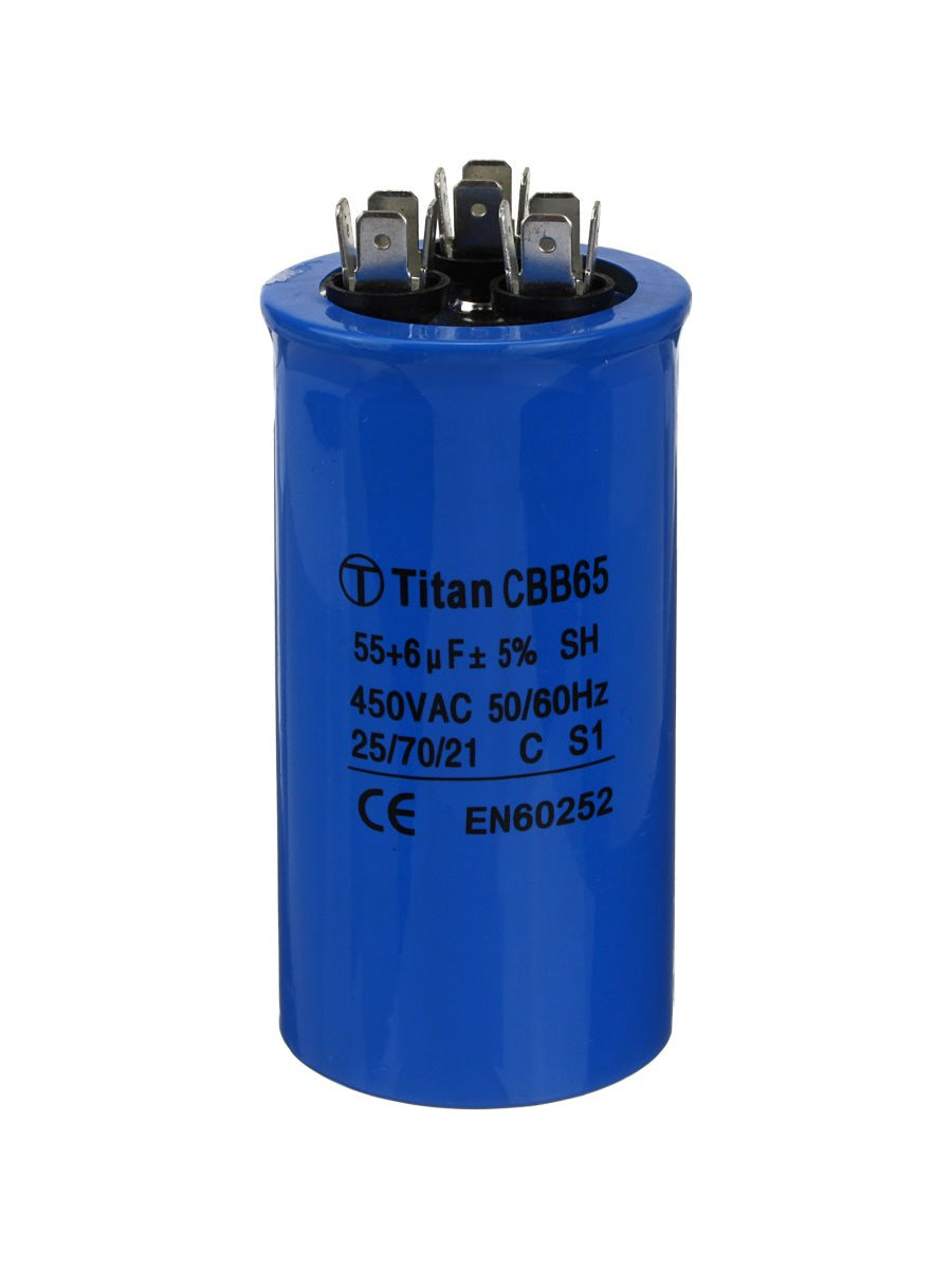 Конденсатор пусковой 55мкФ 450В VAC клеммы металл корпус СВВ65 С, для кондиционеров