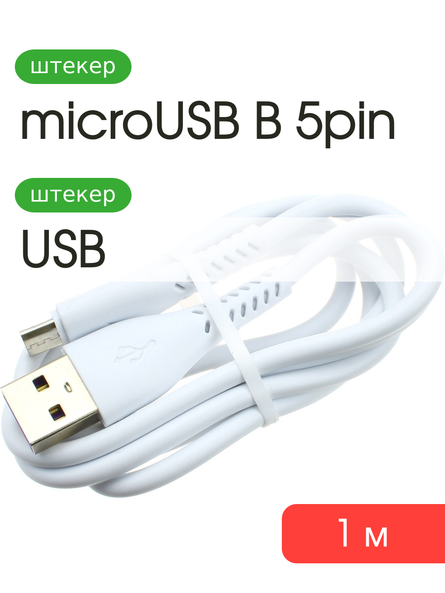 Шнур USB A-Micro-USB B (Android) 5PIN 1м OD4.0/ROHS/медь 3,5А белый, быстрая зарядка