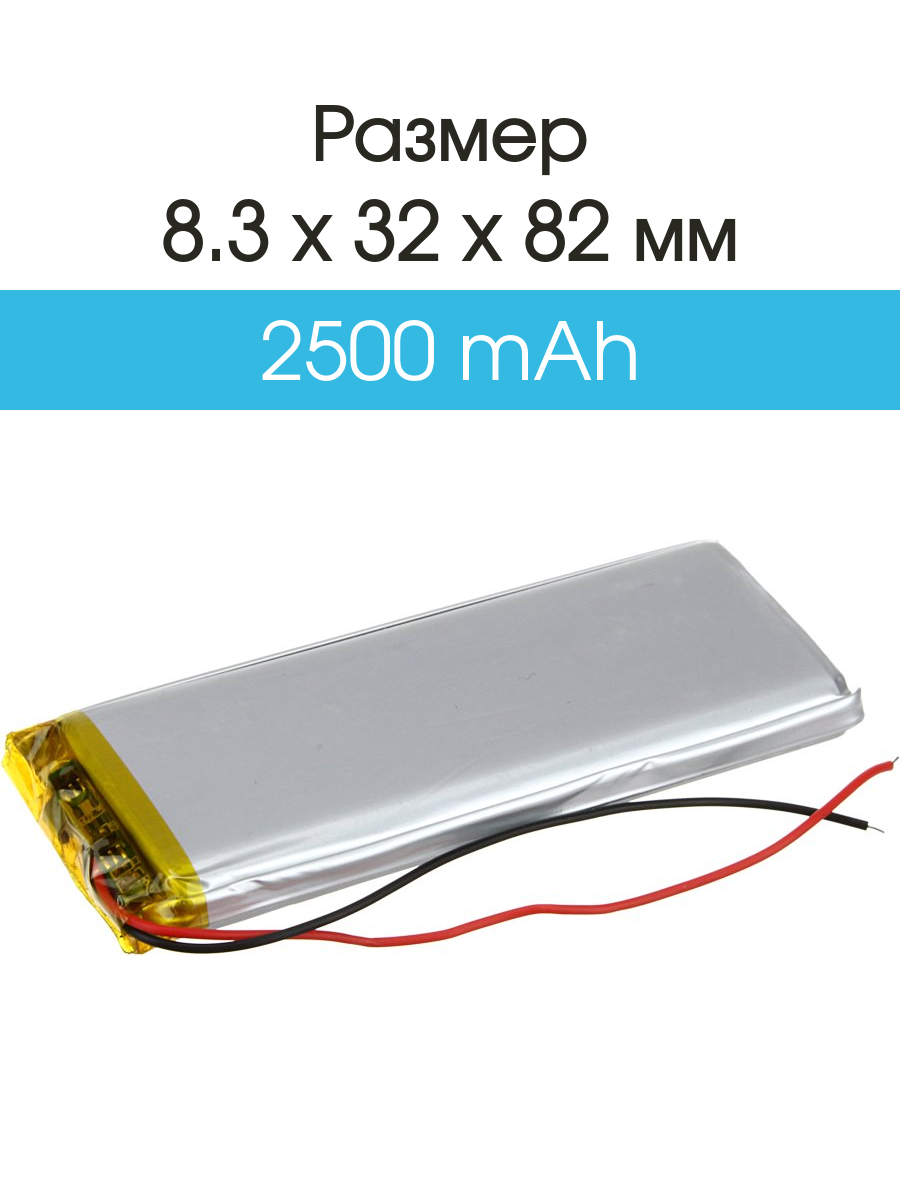 Аккумулятор • Химический тип - Li-Po • Напряжение 3,7В • Ёмкость - 2500mAh • Высота 8.3мм • Ширина 32мм • Длина 82мм