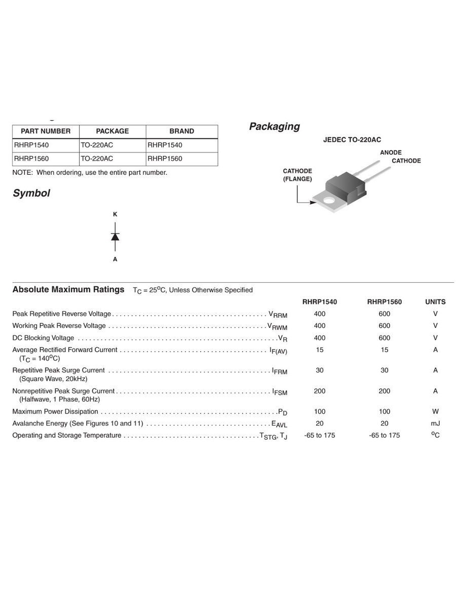 Максимальный (средний) прямой ток на диод, If(AV) 15 А