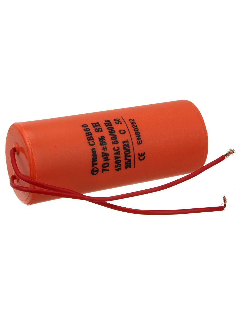 Конденсатор пусковой 70мкФ 450В 5% выводы провод/болт