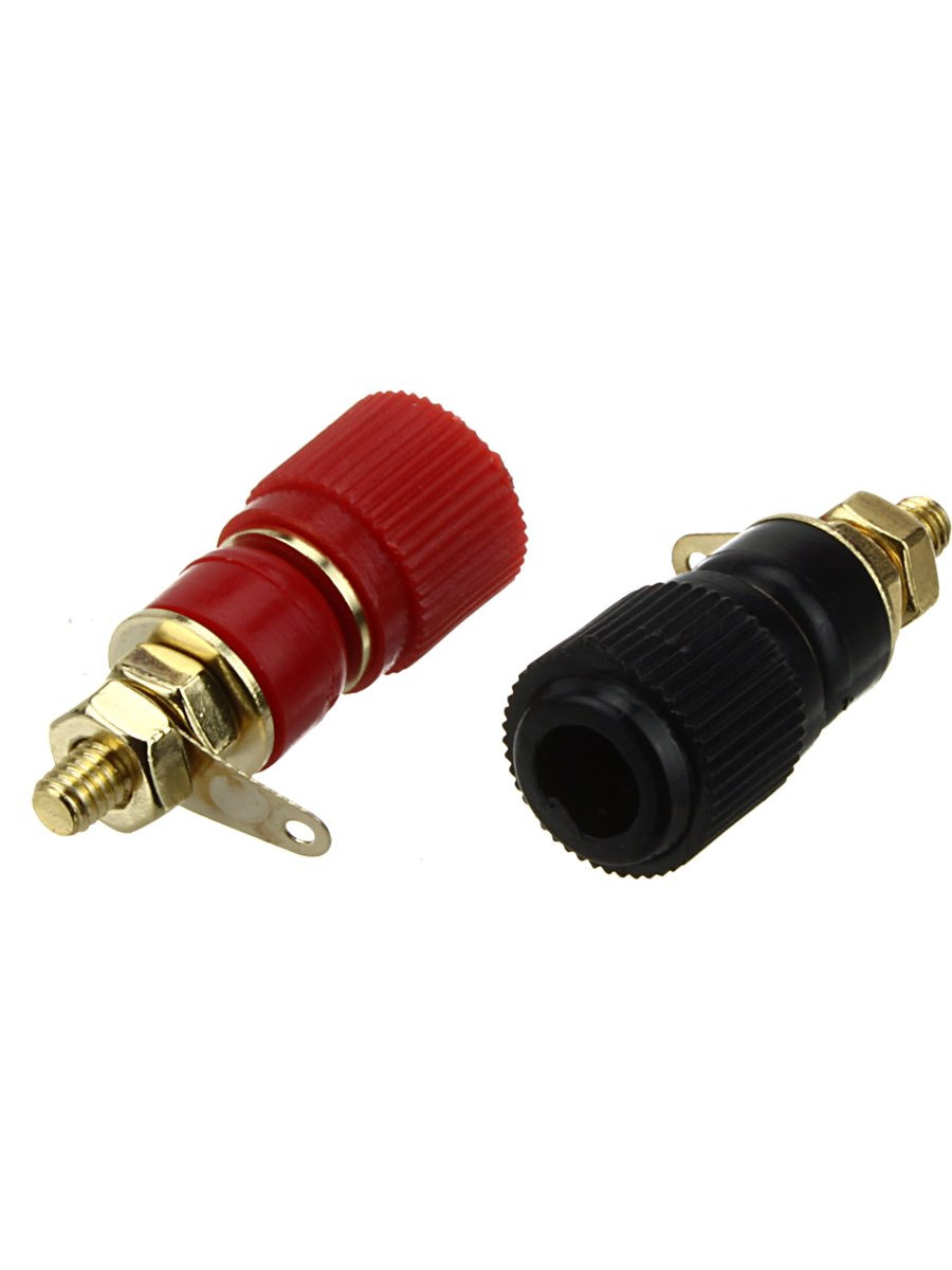 Винтовые клеммы - это тип кабельного терминала, который можно найти на колонках, ресиверах и усилителях. Они допускают использование оголенного провода динамика и четырех различных типов разъемов: штыревых разъемов, разъемов типа «лопатка», штекеров «банан» и двойных штекеров для бананов.