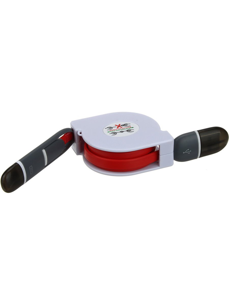 Шнур USB A-microUSB B/iPhone 5 1.0м плоский кабель на рулетке
