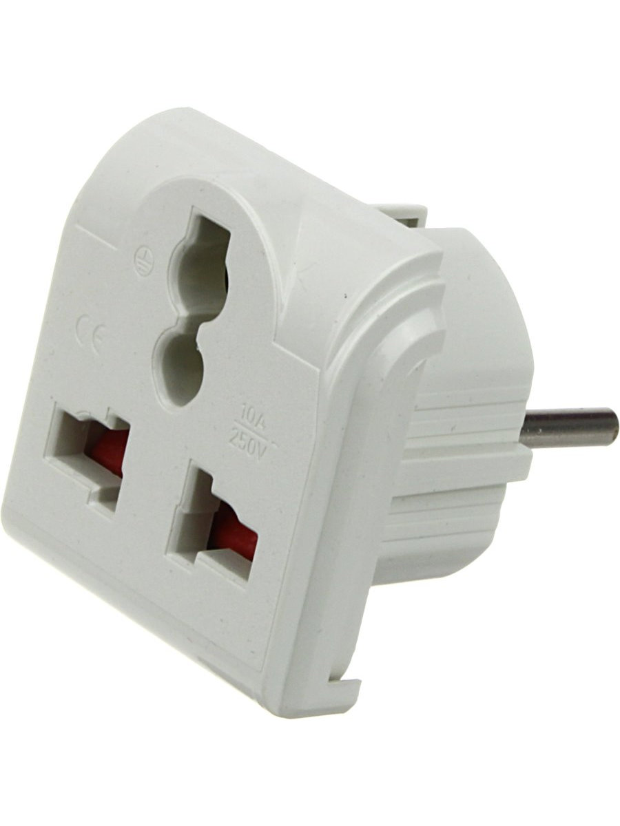 АДАПТИРУЕТ БОЛЬШИНСТВО ТИПОВ ВИЛОК европейских, американских и азиатских стран производителей к розеткам, используемых в России