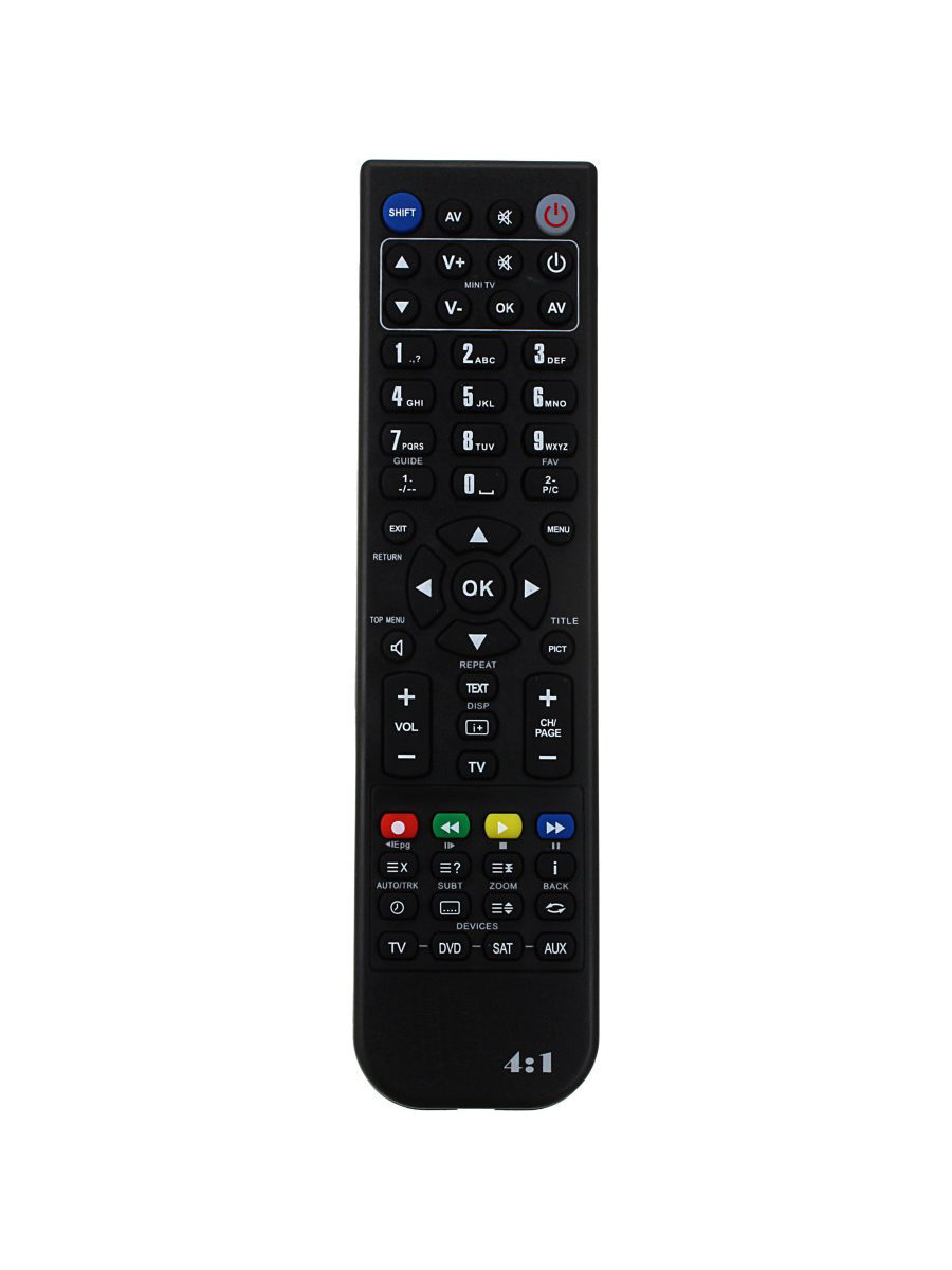 USB программируемый пульт дистанционного управления. В зависимости от модели пульта позволяет управлять 4-мя устройствами, содержит 48 кнопки, количество которых увеличивается в 2 раза с использованием служебной кнопки SHIFT. Данный пульт можно запрограммировать как онлайн на сайте производителя, так и на собственном компьютере с использованием программы RCCreator, база данных которых содержит более 4000 прошивок начиная с BQS и GBS пультов 80-х годов выпуска, до новейших LCD TV, LED TV, DVD проигрывателей, спутниковых тюнеров, домашних кинотеатров и автомагнитол с поддержкой TV и DVD. Пульты производятся только из качественных материалов в соответствии с ISO9001-2000, и по своим качественным характеристикам не уступают оригинальным пультам.