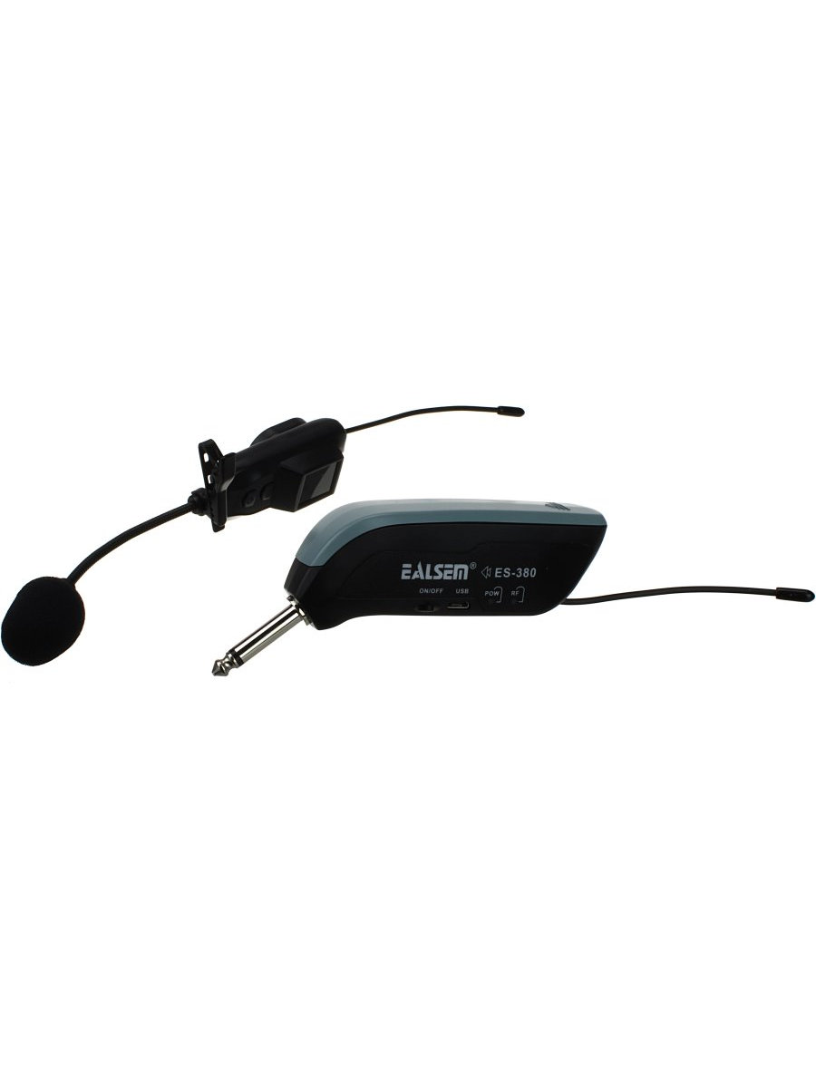 Микрофон беспроводной головной EALSEM ES380 (гарнитура). Легкий, удобный, идеально подходить для аниматоров, проведения лекций и занятий. Если Вы присматриваете для себя высококлассную гарнитуру для проведения мероприятий и Вам нужно чтобы ваши руки были свободны , вам нужно постоянно двигаться , что то показывать, то этот вариант микрофона очень подойдет для такого использования. Радиус действия этого варианта до 100 метров (без препятствий в виде стен). Микрофон очень удобен в использовании , для того чтобы работать , нужно базу микрофона подключить в микрофонный вход и включить базу и сам микрофон на прием и передачу (нажатие обычной кнопки). Комплект очень легкий и совсем не мешает при работе. Однозначно рекомендуем для профессионального использования. База имеет сменный аккумулятор, в самой гарнитуре аккумулятор встроенный. Зарядить комплект можно при помощи USB кабеля , что очень удобно.