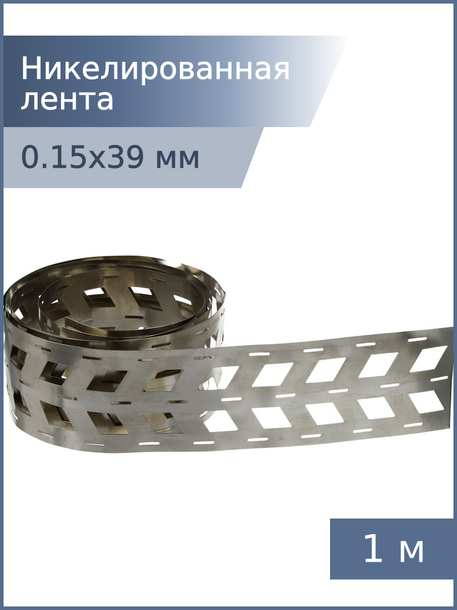 Никелированная лента 0,15*39*18,5мм 3W 1м для спайки аккумуляторов 18650