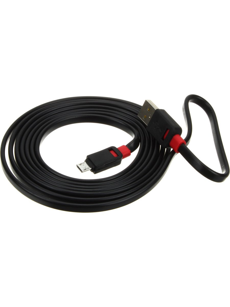 Шнур USB A-microUSB B 5PIN 2.0м плоский, черный