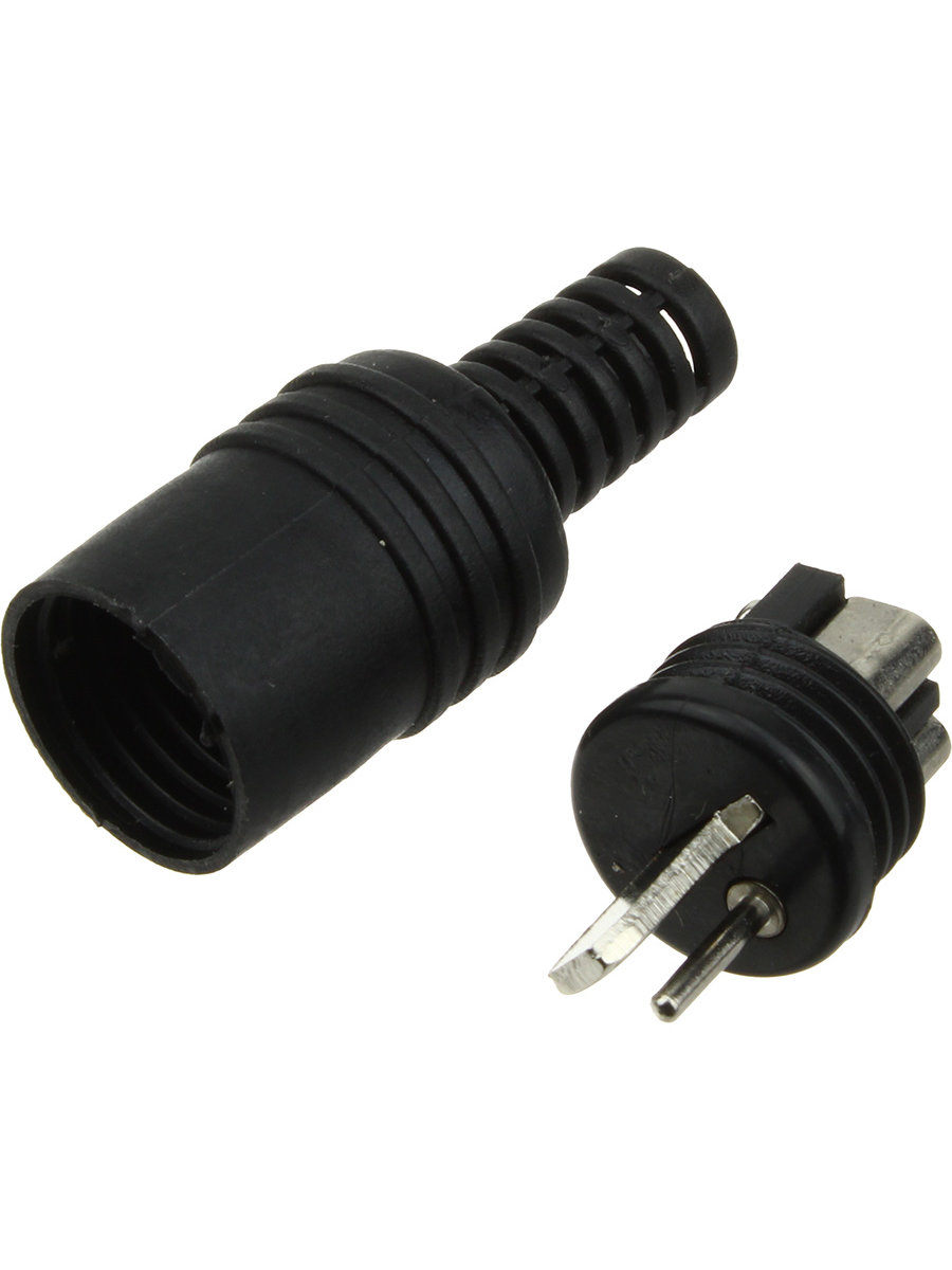 Штекер акустики точка-тире на провод черного цвета.