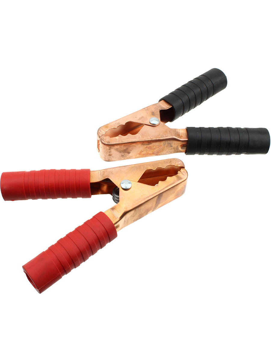 Зажим "крокодил" представляет собой электромеханическое устройство, предназначенное для оперативного соединения или разъединения контакта проводов при выполнении измерительных работ или монтажа электрических и слаботочных сетей. Зажим получил свое название за схожесть с челюстями крокодила. Состоит он из двух фигурных деталей с «крокодильими» зубцами, скрепленных серединами специальным штифтом и способных поворачиваться на некоторый угол вокруг оси соединения. К одной из деталей монтируется контактный провод. Сжатие «челюстей» обеспечивается пружиной, вставленной с другой стороны штифта. Контактная часть изделия изготавливается из стали с никелированным покрытием. В целях безопасной эксплуатации зажима, ручки имеют изоляцию, изготовленную из ПВХ, что предохранит от поражения специалиста электрическим током. Чаще всего зажимы применяются парами черного и красного цвета (50/50). Основные характеристики: