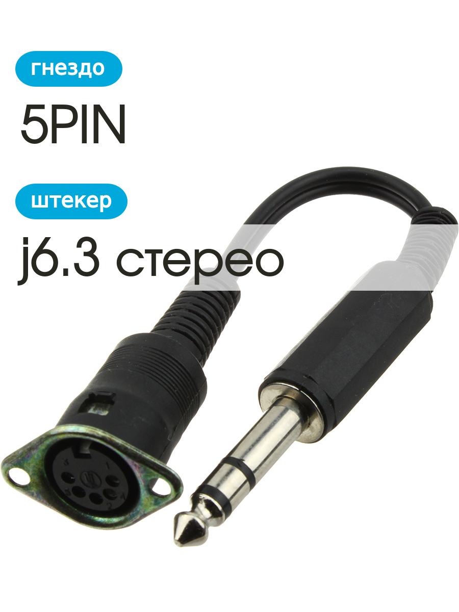 Переходник или адаптер с DIN 5-pin (5/180° или DIN 41524) "гнездо" на стерео Jack 6.3 мм "штекер" применяется в аудиотехнике. Через него подключаются магнитофоны и усилители.