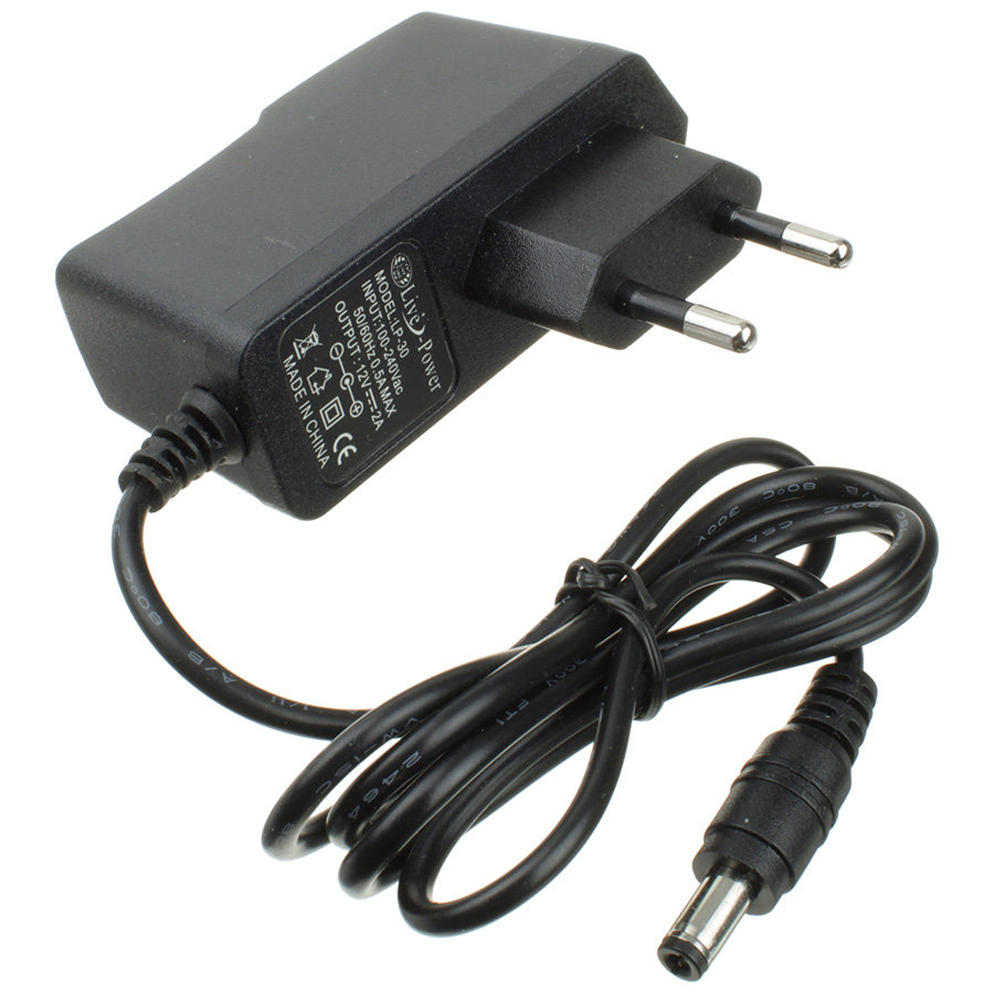 Блок питания 12В 2А импульсный штекер 5.5х2.5, евровилка, узкий корпус