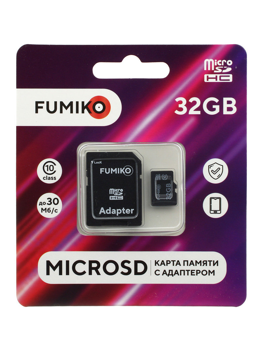 Карта памяти 32GB MicroSDHC, с адаптером SD, Fumiko