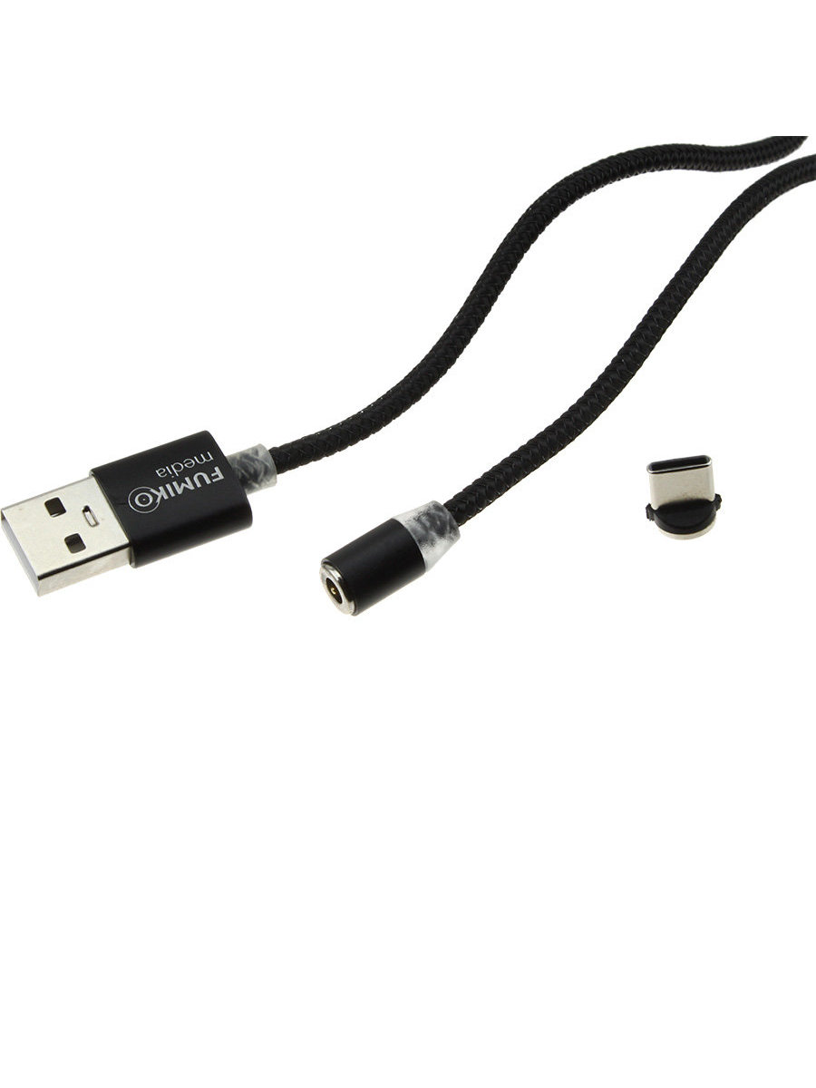 Шнур USB A-Type-C 1.0м магнитный оплетка ткань Fumiko, черный