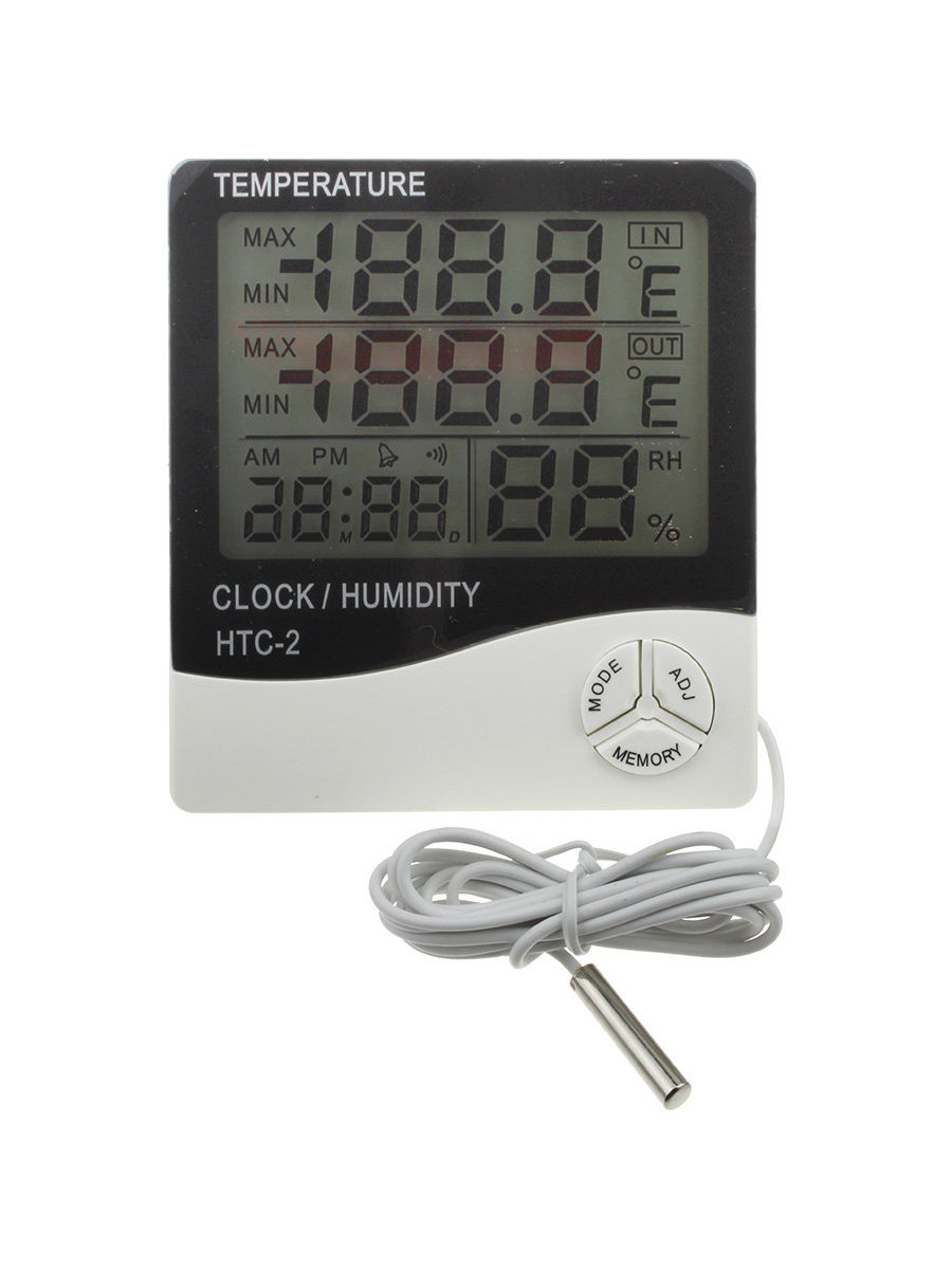 Термометр-гигрометр цифровой HTC-2 уличный, часы, будильник