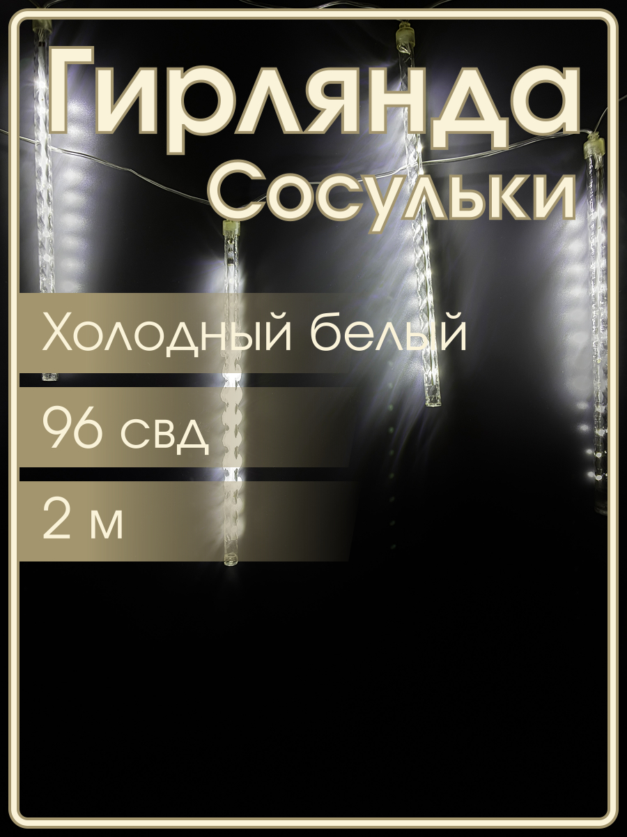 Гирлянда сосульки тающие 8шт по 12 свд, белая 30х200 см