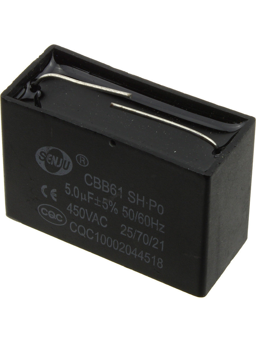 Плёночные конденсаторы с органическим диэлектриком серии СВВ61 для работы в цепях переменного тока изготавливаются в прямоугольном пластмассовом корпусе из не поддерживающего горение материала. Для обкладок применена металлизированная плёнка, диэлектрик – полипропилен. Сbb61 – это конденсатор, разработанный для совместного использования с асинхронными электродвигателями, как пусковой или рабочий. Собственной индуктивности не имеет. Оснащается гибкими выводами или терминалами для ножевых разъёмов.