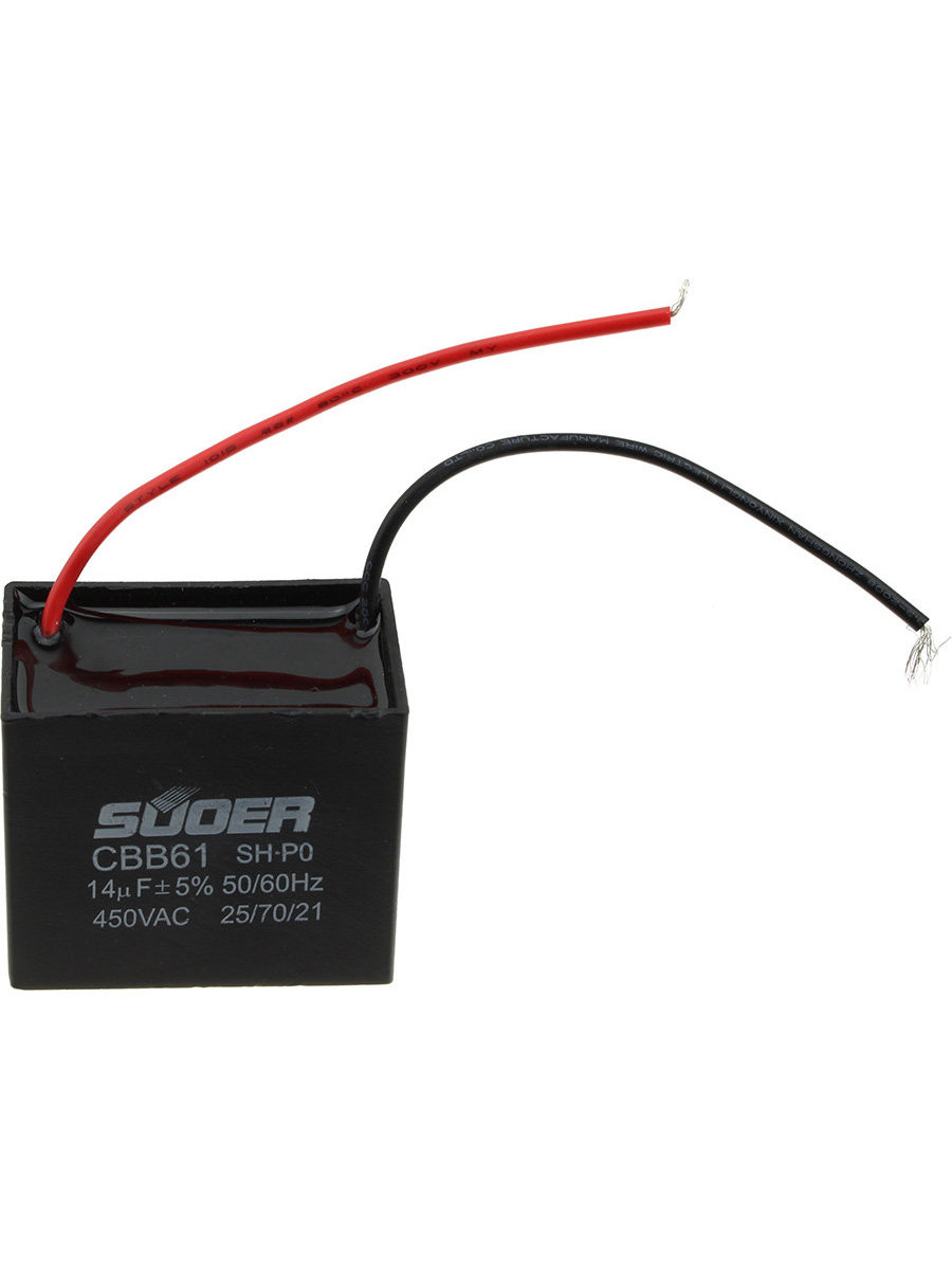 Конденсатор пусковой 14мкФ 450В 5% CBB-61 выводы провод