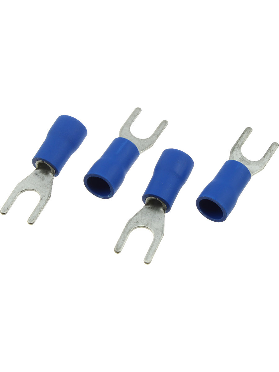 Наконечник вилочный изолированный применяется для оконцевания медных проводов сечением от 1,5 до 2,5 мм², одножильных и многожильных. Вилочные изолированные наконечники обеспечивают хороший контакт между проводом и контактными частями электрооборудования; наилучшим применением будет использование их при монтаже часто демонтируемых соединений.