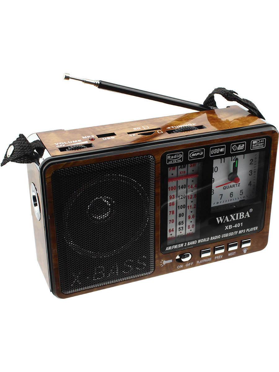 Радиоприемник XB-401 Waxiba USB/SD/microSD фонарик часы, коричневое