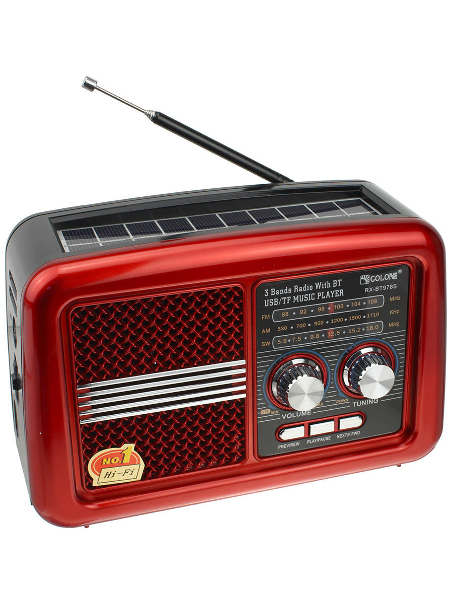 Радиоприемник RX-BT978S Golone USB/SD/microSD фонарик ACC, красное