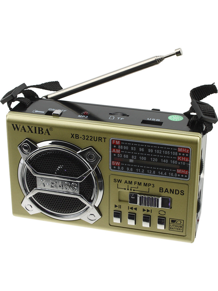 Радиоприемник XB-322URT USB/microSD Waxiba аккумулятор батарейки фонарик, gold