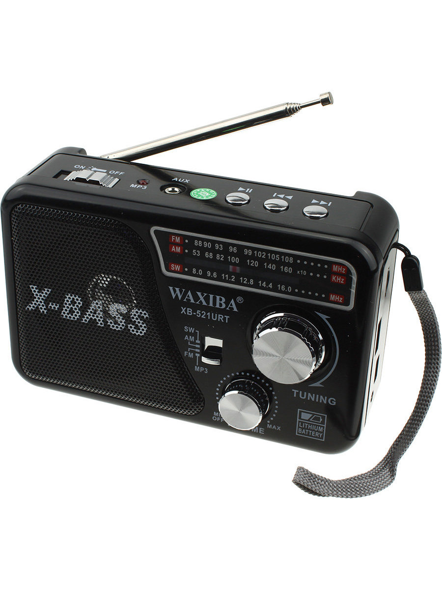 Радио XB-521URT Waxiba USB, microSD, фонарик, черное