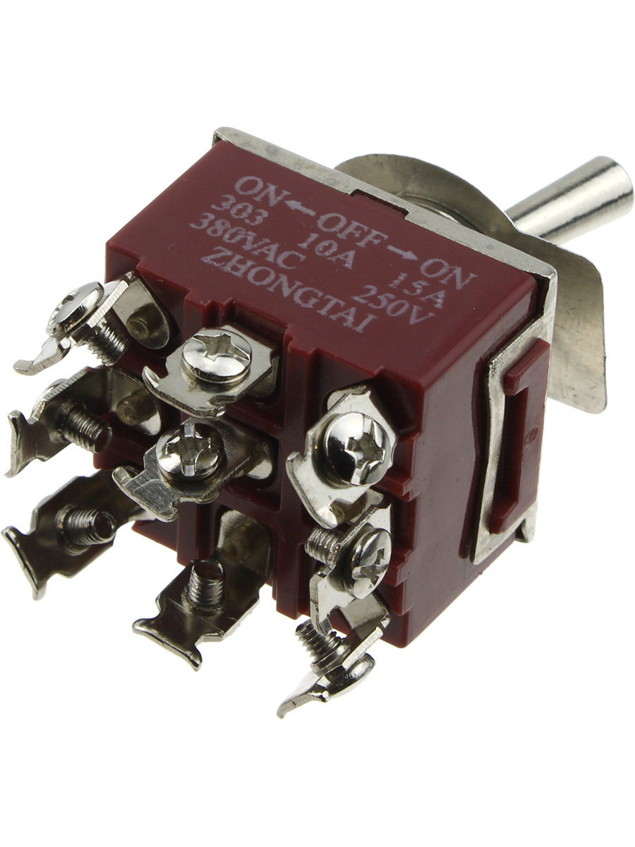 Тумблер 28*33 250В 15А 9 контактов 3 положения метал