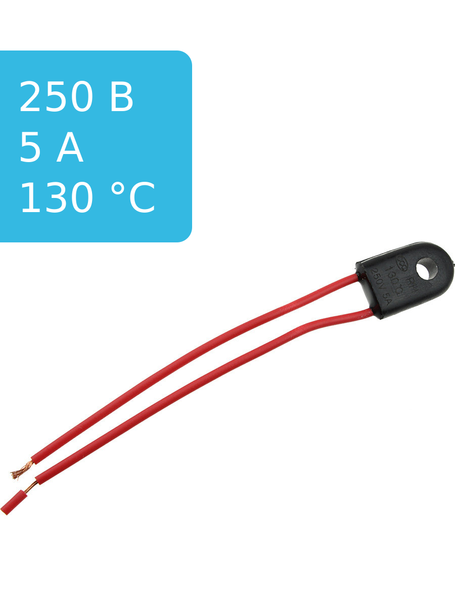 Термопредохранитель 130°С 5A, на шнуре, упаковка 3шт