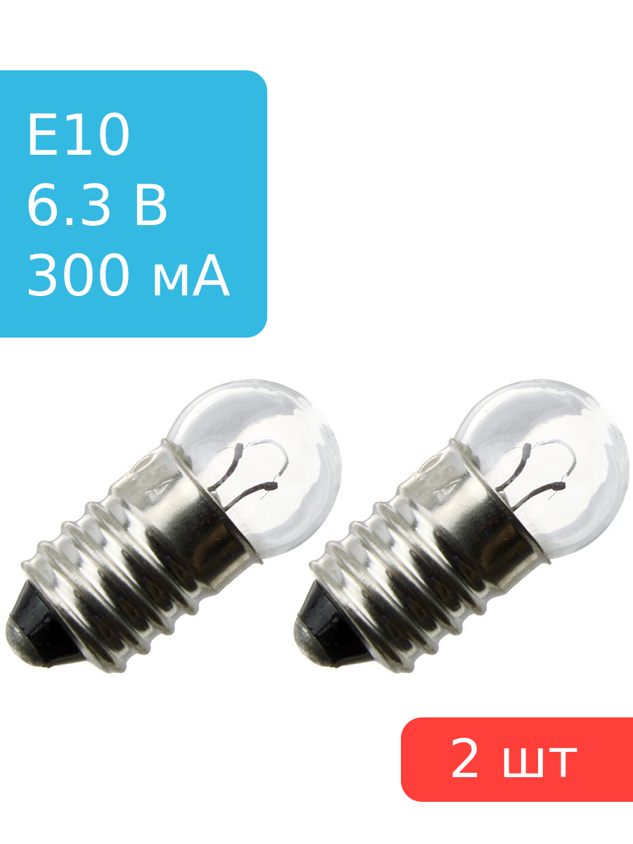 Лампа мини d10mm 6.3V 300mA резьба, для фонариков, 2шт