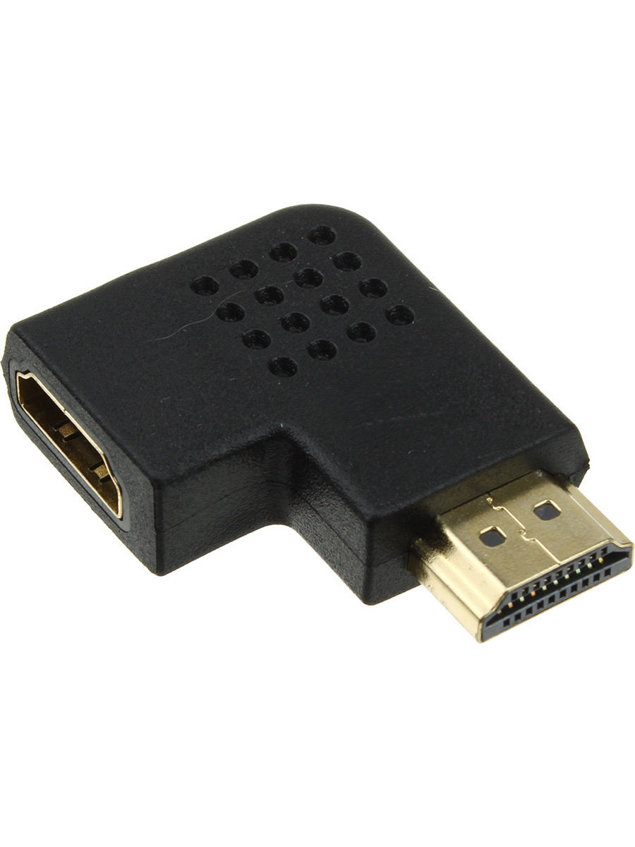 ПЕРЕХОДНИК гнездо HDMI - штекер HDMI УГЛОВОЙ 90° предназначен для удобного подключения кабеля HDMI к устройству в условиях ограниченного пространства, пропуская через себя цифровые видеоданные высокого разрешения и многоканальные цифровые аудиосигналы с защитой от копирования.