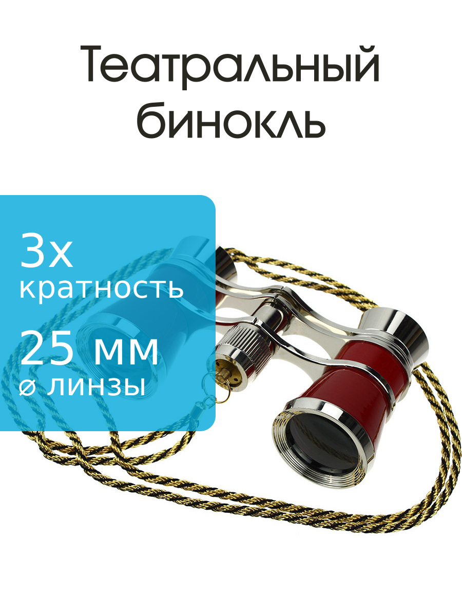 Бинокль 3Х25 театральный, вишневый, золотистый